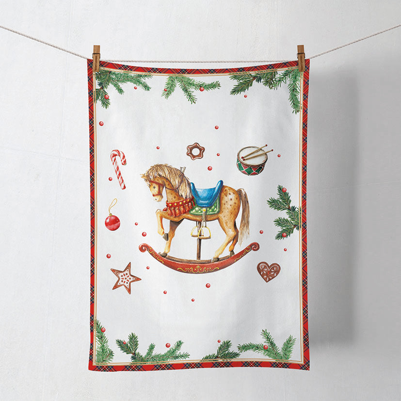 Weihnachtliches Geschirrtuch mit Schaukelpferd
