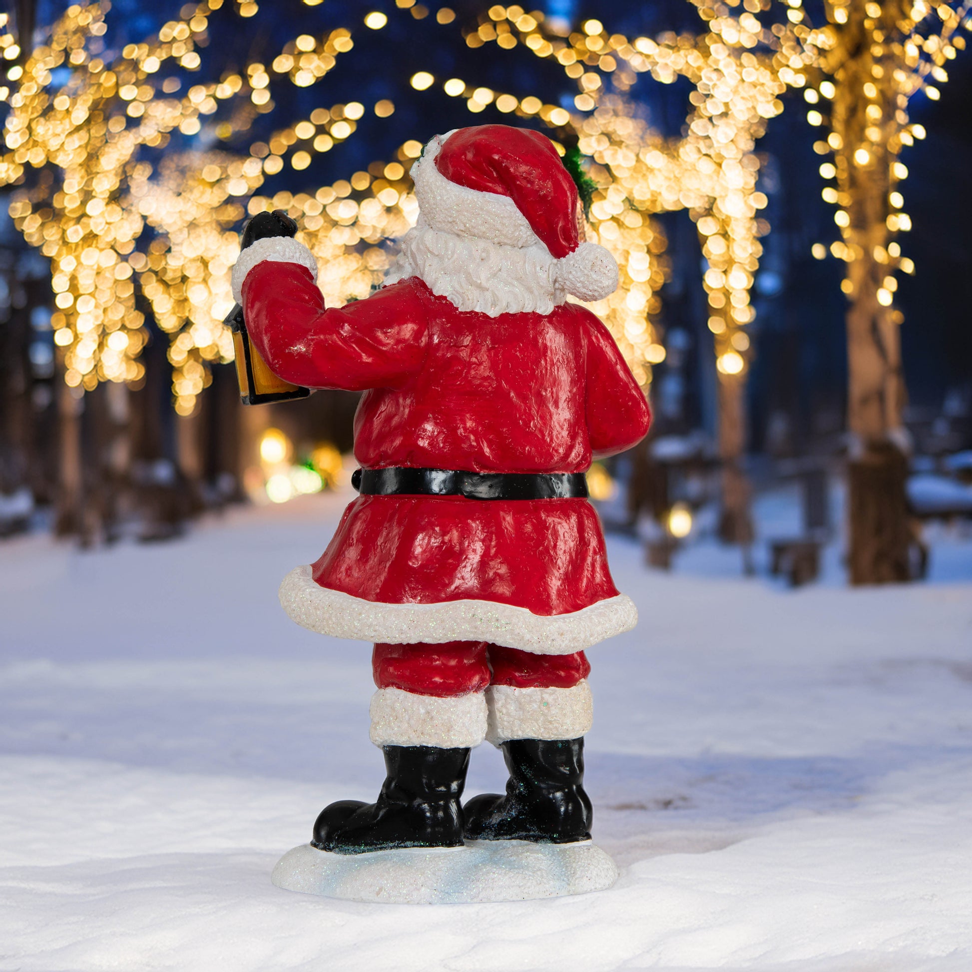 Figur Weihnachtsmann mit Kranz und Laterne
